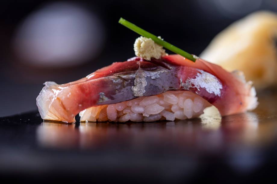 Com cozinha supervisionada pelo chef-executivo e sócio do Grupo Bernacca, o espanhol Gerard Barberan, o Kuro foi pela primeira vez o melhor de sua categoria por VEJA SÃO PAULO COMER & BEBER 2024. Não repete o êxito do ano anterior, mas continua uma referência de culinária japonesa na capital paulista. No dia a dia, os pratos são elaborados pela dupla Henry Miyano e Luiz Gustavo Costa, que faz apenas o omakassê (R$ 580,00) sob reserva. Começa com entradas como o sashimi de olhete com três temperos (wassabi fresco, umeboshi com shissô e pasta de alga nori), o ótimo shabu-shabu de carne de wagyu escaldada no dashi com folhas de horenso e cogumelo shiitake grelhado, a prejereba grelhada sobre berinjela defumada com caldo de vinagre vermelho, dashi e mirin mais pimenta sancho em pó e o chawan mushi de cogumelo enoki. A sequência de sushis inclui akami marinado no shoyu com karashi japonês, chutoro, toro grelhado selado com carvão, serra, sororoca, linguado com alga nori, atum batido no temaki, enrolado de kampio (abóbora seca japonesa) e bolo de ovo. De sobremesa, pequenos doces, como o macaron de shissô.
