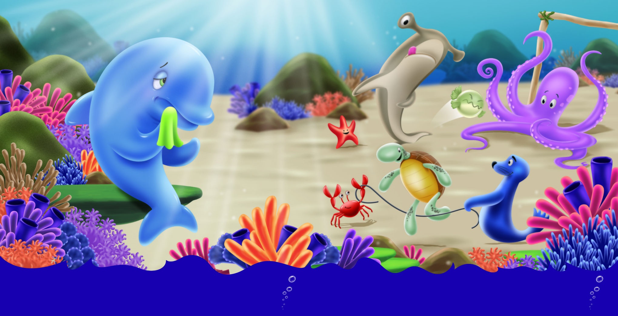 No livro Golfinho tem dor de dente?, escrito em letra bastão e próprio para a fase de alfabetização, aborda de maneira leve, divertida e lúdica temas sérios de saúde pública, como: higiene bucal, técnicas de escovação e alimentação saudável. Publicação escrita pela dentista Naia Tonhá Almeida e ilustrada