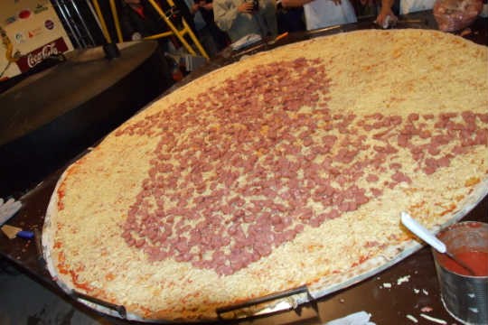 A iguaria gigante irá render cerca de 500 pedaços, que serão servidos no almoço dessas crianças. Paralela à 'pizza gigante', ainda serão confeccionadas cerca de 100 pizzas no tamanho padrão. O sabor predominante será a marguerita.