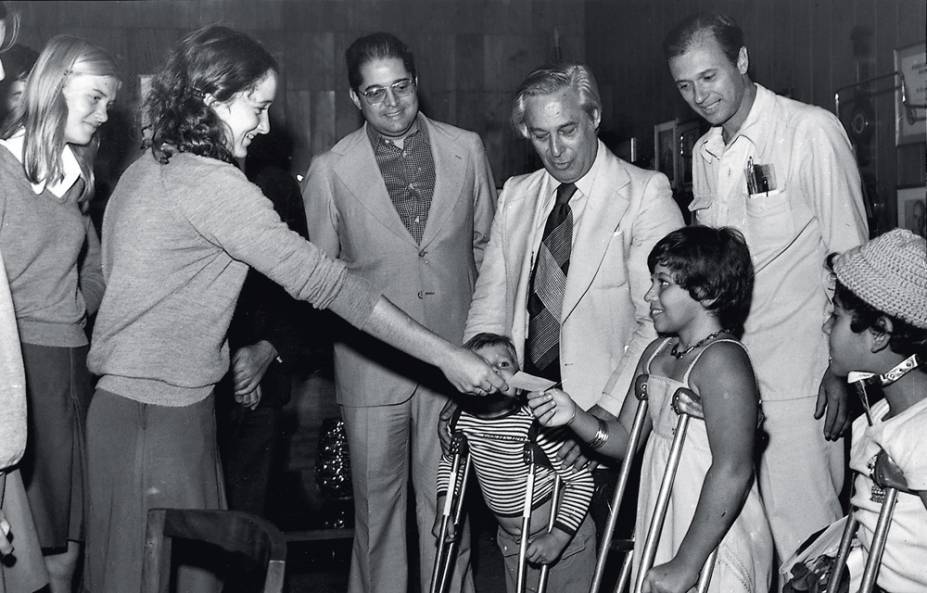 Filha do doutor Pedro Alberto de Moraes e Silva, que era membro do conselho da AACD junto com o fundador, Vera Moraes e Silva foi voluntária por anos até se tornar ela própria paciente. “Tive que fazer uma cirurgia radical, abrir a calota cerebral. Estive cinco meses internada no Hospital 9 de Julho, metade deles na UTI. Fiquei com paralisia do lado esquerdo, saí sem poder andar”, lembra Vera. “Eu não podia fazer as coisas, ficava brava.” Seu marido, Marcio Gonçalves Moreira, que na década de 50 chegou a arrecadar doações em troca de selinhos para a Campanha Pró Criança Defeituosa (sim, essa era a denominação original, deixada de lado definitivamente em 2000), foi quem esteve ao seu lado durante o tratamento. “Era um sacrifício. A gente acordava antes das 6 horas, ela com essa dificuldade, eu a ajudava a se vestir e íamos”, lembra Marcio.