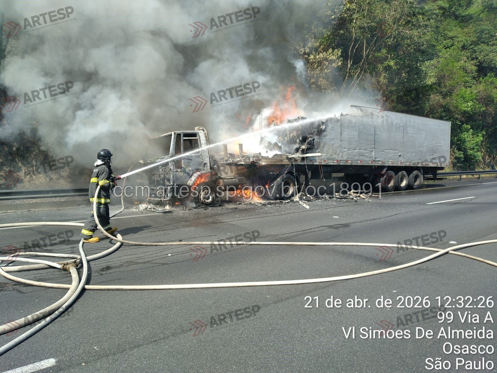 Segundo a ARTESP (Agência de Transporte do Estado de São Paulo), o congestionamento começa no quilômetro 17. O motorista não se feriu, e o incêndio foi controlado às 13h23.