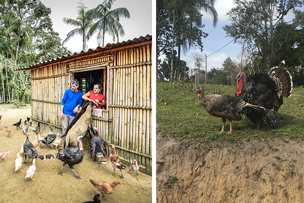 Casal vive isolado com quatro perus e outros animais no litoral sul