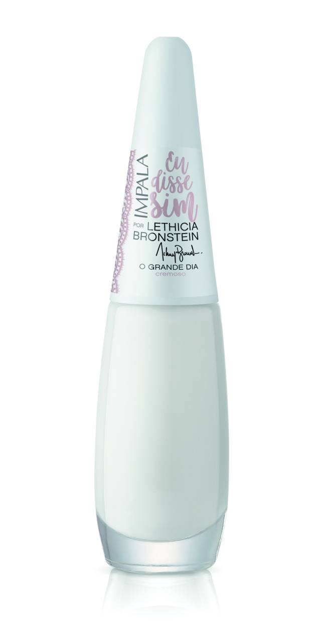 Estilista famosa pelos vestidos de noiva, Lethicia Bronstein se juntou à marca de esmaltes Impala para lançar a coleção “Eu Disse Sim”, com cinco esmaltes brancos, de diferentes acabamentos, voltados às moças prestes a trocas alianças. Eles custarão 3,50 reais.
