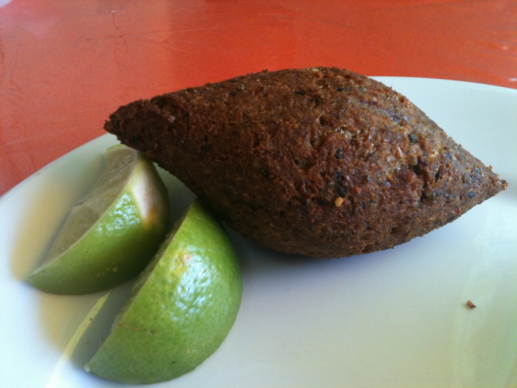 A carne e o trigo são bem temperados por hortelã. O recheio é de catupiry, bastante catupiry. Puristas, não se assustem. Não é tradicional mas fica uma delícia, é o que importa.