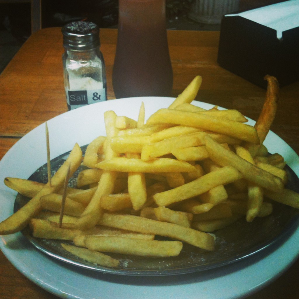 Acredite ou não, a foto acima é da meia-porção, que custa só R$ 5,50. Achei a quantidade tão farta que perguntei para o garçom: “Tem certeza que essa é a meia-porção?”. Ele respondeu, cheio de graça: “Logo se vê que é a sua primeira vez por aqui. A gente capricha mesmo, para o cliente voltar.” Funcionou. Quero voltar já!