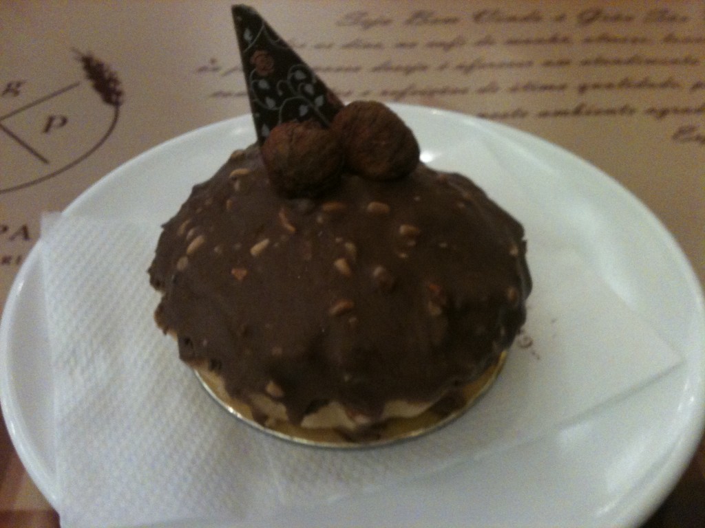 Depois, peça a tortinha de chocolate, creme de Nutella e avelãs no topo.