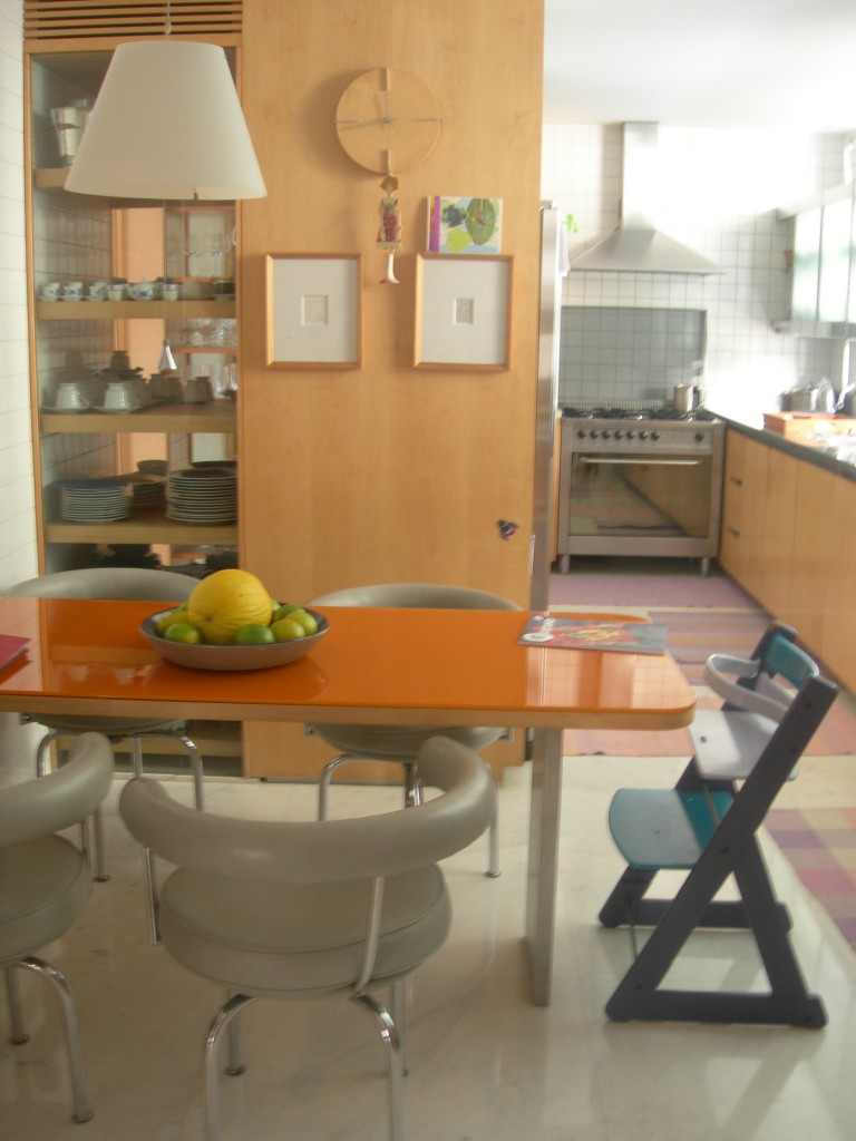 Da casa de Bratke pulamos mais de seis décadas e fomos parar na casa 4×30, a premiada obra do casal de arquitetos Lourenço Gimenes, do FGMF, e Clara Reynaldo, do CR2. O mais incrível desse projeto foi a forma como eles conseguiram criar uma residência com cozinha, sala, escritório, lavabo, área de serviço e duas suítes num espaço de quatro metros de frente por trinta de fundo. Haja inspiração! Um jardim central traz luminosidade e ventilação e divide a construção em dois blocos principais, interligados por uma passarela metálica. Tudo é envidraçado, o que amplia a sensação sobre o espaço real. Quem entra dá de cara com a cozinha, abaixo do nível da entrada e da sala. Como brincou Lourenço, a mesa de jantar como uma continuação do piso da sala foi criada para que o cachorro não suba na cadeira em busca de comida, já que poderá caminhar diretamente sobre a mesa. 😉