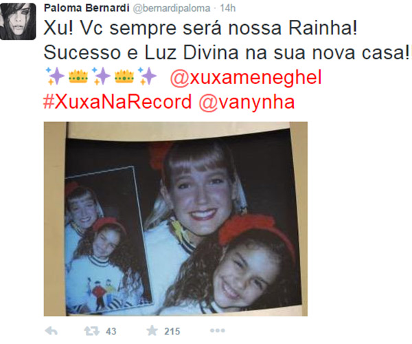 Deborah Secco também comemorou a estreia da apresentadora. “Eterna rainha. Arrasa, Xu“, escreveu. “Eu admirava você e, depois de ter parabenizado a Xuxa, admiro mais ainda”, elogiou uma das seguidoras.
