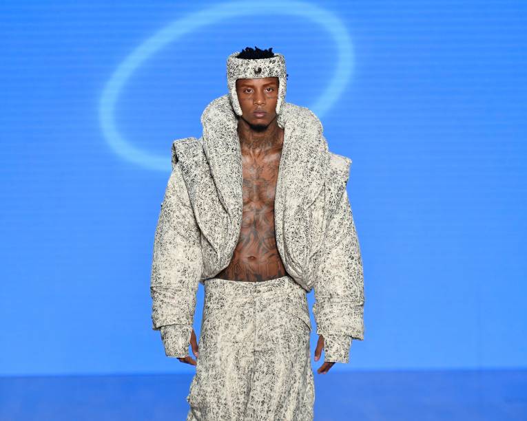 Com formas inusitadas e mistura de texturas, a coleção traz o trabalho artesanal como contraponto a uma ideia fria e impessoal relacionada à hegemonia das máquinas. A coleção, batizada de Golem (figura mitológica feita de argila), traz um mix de materiais, como o látex, o crochê, a pele falsa e o cânhamo, em looks que fogem do convencional e remetem à estética de fim de mundo, vista em filmes como a franquia Mad Max e Blade Runner. Diferente do que mostrou no desfile passado – com cores superfortes – o estilista manteve-se no neutro: usando preto, cinza, bege e prateado, com alguns toques de laranja e vinho.
