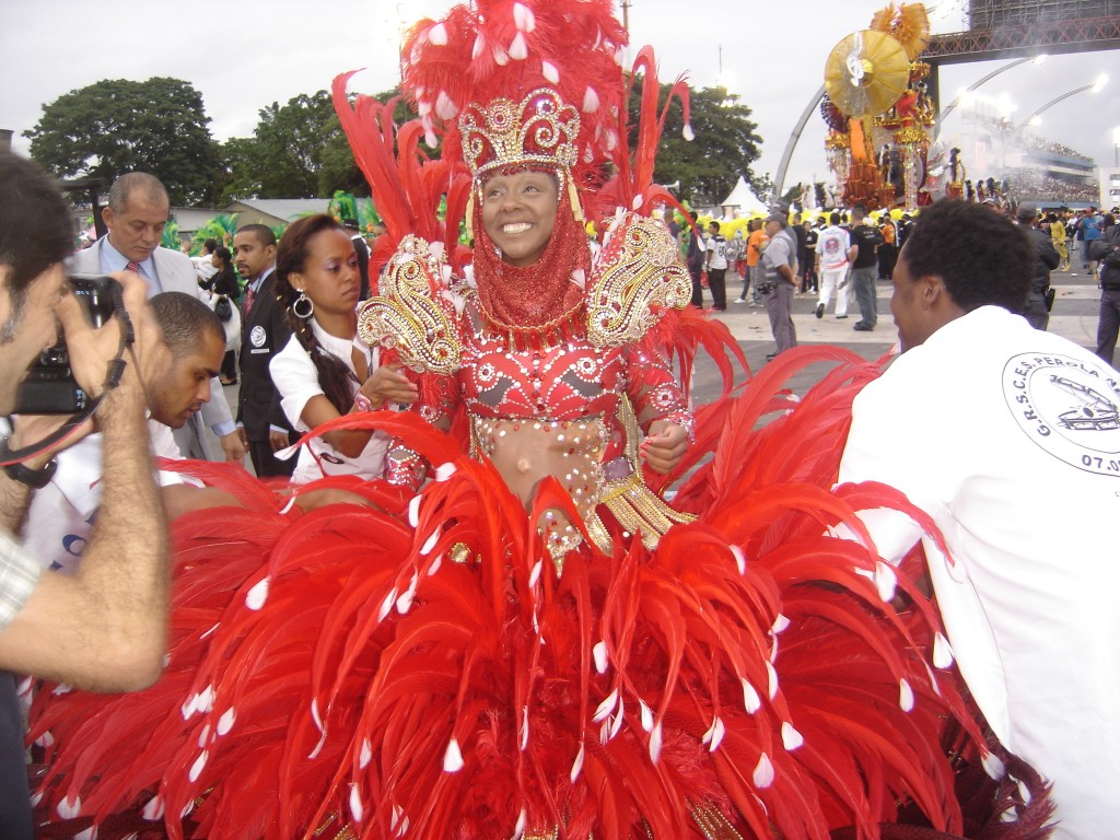 Pode não parecer, mas atrás desse amontoado de penas de faizão — e das pessoas em volta, ajudando — há uma passista. Gisa Camilo entra ao lado de André Guedes como primeiro casal de mestre-sala e porta-bandeira da Pérola Negra, última escola a passar pelo Anhembi nesta sexta. Para a confecção da fantasia foram usadas […]