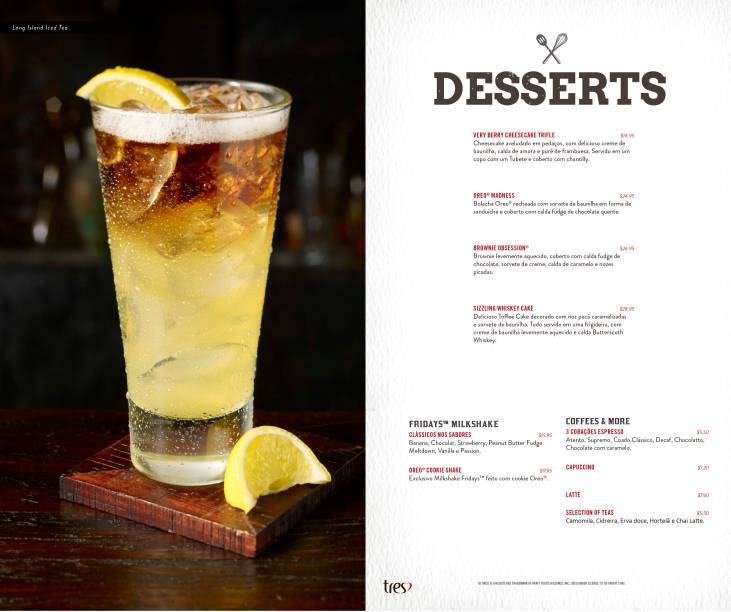 Veja o cardápio completo, de comidas e bebidas: