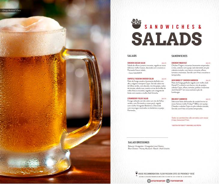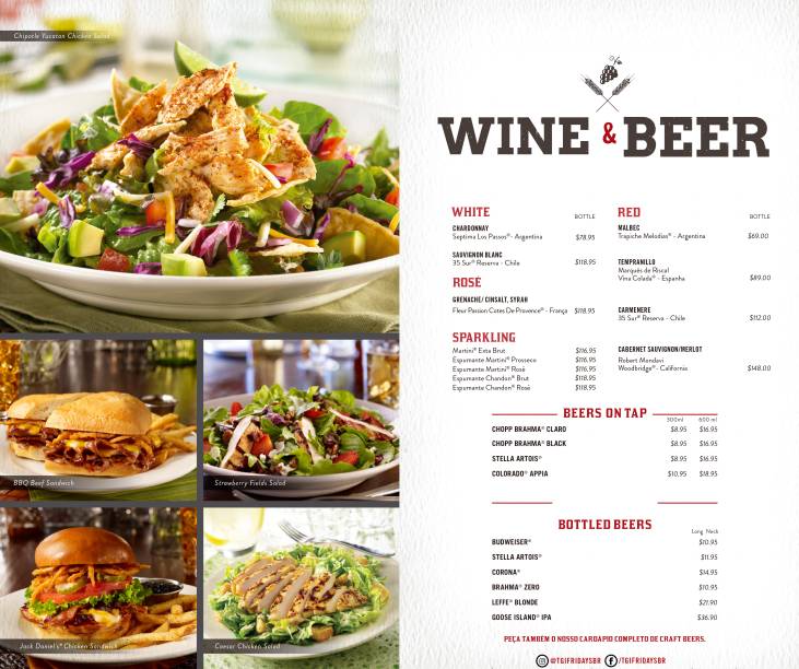 Agora sob o comando do Grupo Bar, responsável também pelas casas Gràcia, Brexó, Sarau e Biri Nait, o TGI Fridays vai concorrer com redes americanas de casual dining na cidade, como Applebee’s e Outback. Os preços ficam quase na mesma média. Confira alguns destaques do cardápio: