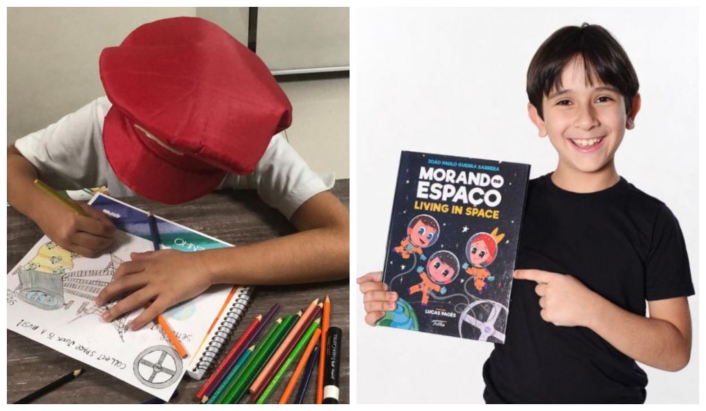 A competição, divulgada no site da agência voltado para crianças, pedia que os participantes produzissem uma peça gráfica – desenho, pintura, escultura – que tivesse uma representação de ciência e espaço. João traçou um equipamento para recolher lixo espacial, ideia que aparece no seu segundo livro (ele já escreveu três, todos em português e inglês).
