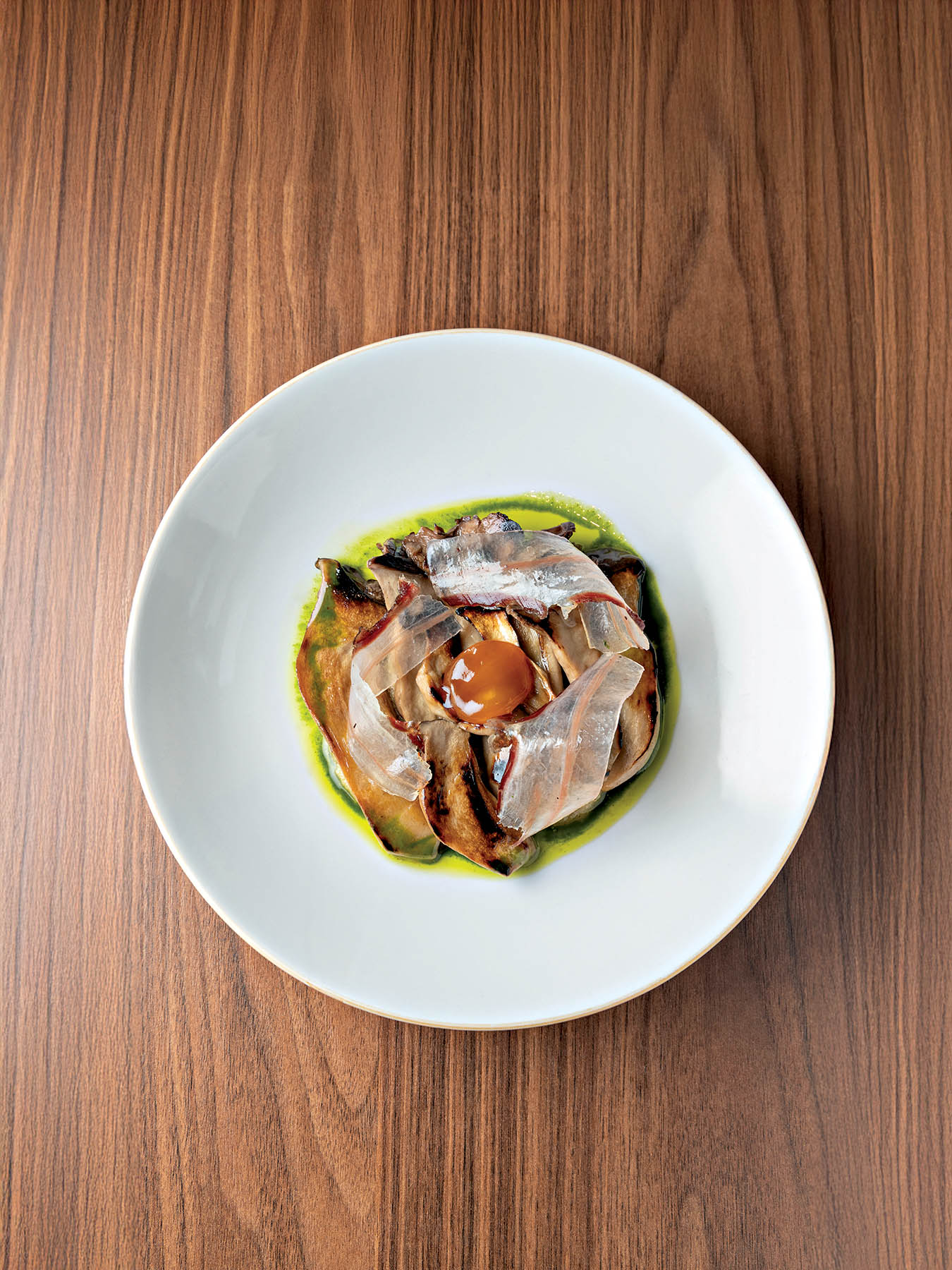 O nome Basq sugere que o endereço aberto em dezembro, em uma das charmosas casinhas da Rua Normandia, em Moema, seja um representante da cozinha do País Basco, onde aconteceram algumas das maiores revoluções culinárias da Espanha e do mundo, na virada do século XX para o atual. São de lá chefs como Juan Mari Arzak e sua filha Elena Arzak, Martin Berasategui e Andoni Luis Aduriz. Nem a arrojada culinária da região e nem mesmo a clássica espanhola estão exatamente contempladas no menu. Pratos ibéricos aparecem aqui e acolá, nem sempre feitos como manda a tradição. Embora a proposta não se cumpra, os resultados mantêm um bom padrão de qualidade. Convidado pelos proprietários, — os irmãos Renato e Vitor Vieira, donos do bistrô Philippe, no outro extremo da mesma rua — para montar o menu, o chef Gustavo Série vem de uma temporada italiana. Isso talvez explique ele tratar o arroz-bomba como um risoto (veja na foto acima). Em vez de ser cozido como uma paella, o arroz basco (R$ 149,00) sai cremoso direto para uma tachinho, ou seja, não tem aquele delicioso pregado típico do grão cozido paradinho, sem agitação. Como leva sobrasada, ganha um forte sabor de defumado do embutido e de páprica. No arremate, recebe polvo grelhado de boa textura, aïoli e ervilha-torta. O cozinheiro apresenta uma receita espetacular: o cogumelo eryngui com homus de couve-flor (R$ 86,00). O fungo grandalhão e firme é assentado sobre a pasta cremosa. Tem ainda a parceria de gema de ovo curada em shoyu com molho tarê e pancetta Curiango, de Rafa Bocaina (o que demonstra uma preocupação com a matéria-prima de excelência). Misture tudo, saboreie e vá ao paraíso. Antes, há o trio da apetitosa croqueta de cocido (R$ 38,00), feita de forma cilíndrica com costela bovina bem úmida no recheio e casca dourada mais maionese de piparra espanhola, um pimentãozinho verde. Ainda de entrada, o boquerone ou anchova (R$ 25,00) passa por uma marinada em vinagre de maçã, azeite extravirgem e raspas de limão-siciliano, estas essenciais para dar aroma. Chega com pão de fermentação natural e manteiga defumada. Muito parecida com a cheesecake, a tarta de queso (R$ 32,00) é uma torta de catupiry de casca bem escura com compota de fruta, que pode ser lichia, como na minha visita.