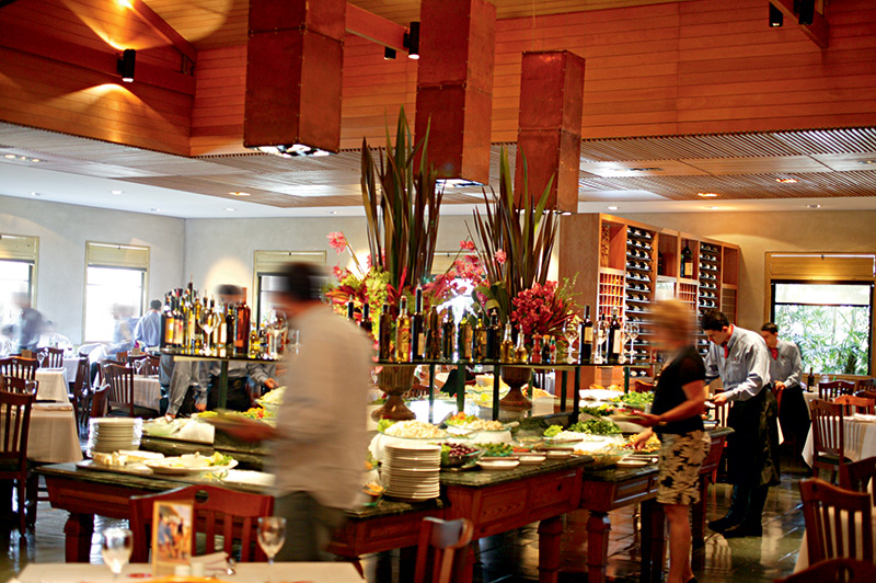 Sempre bem montados, os salões da rede dispõem de brigadas treinadas para receber o grande fluxo de visitantes ávidos pelo rodízio completo (R$ 146,00). Mas nem assim o atendimento está livre de percalços. Na unidade da Rua Augusta, por exemplo, a espera pelo carré de cordeiro pode ultrapassar meia hora. Ainda bem que a paleta no ponto passa pela mesa com mais frequência, assim como o bife ancho. Para apetites mais comedidos, há a opção fogo gourmet, composta de um corte como a fraldinha ou o filé-mignon (R$ 85,00 cada um), com direito à mesa de saladas.