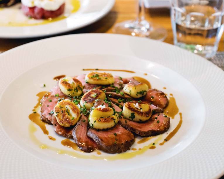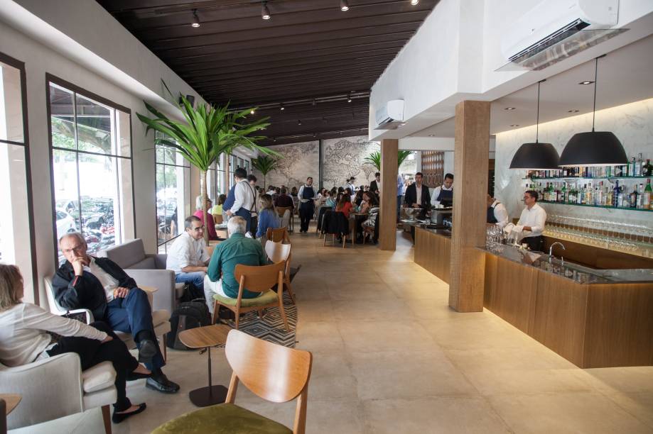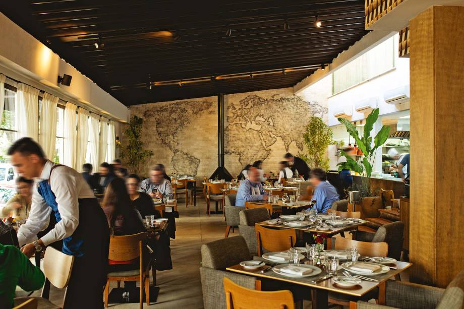 Desde a inauguração, é um restaurante efervescente, sempre com mesas disputadas, em especial no jantar. O público aparece para pedir sugestões como o risoto de camarão com lula frita, tomate e presunto cru (R$ 125,00). A panacota com um toque defumado vem com compota de laranja e esferas de maracujá mais calda de frutas vermelhas, essa dispensável. Sai a R$ 37,00.